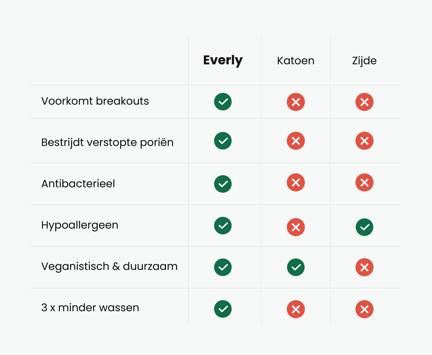 Hoewel zijde zacht is voor je huid, biedt het geen antibacteriële bescherming. Everly combineert premium Supima katoen met zilvertechnologie om bacteriën te elimineren, wat helpt bij het voorkomen van acne en huidirritaties – iets wat zijde niet kan bieden.